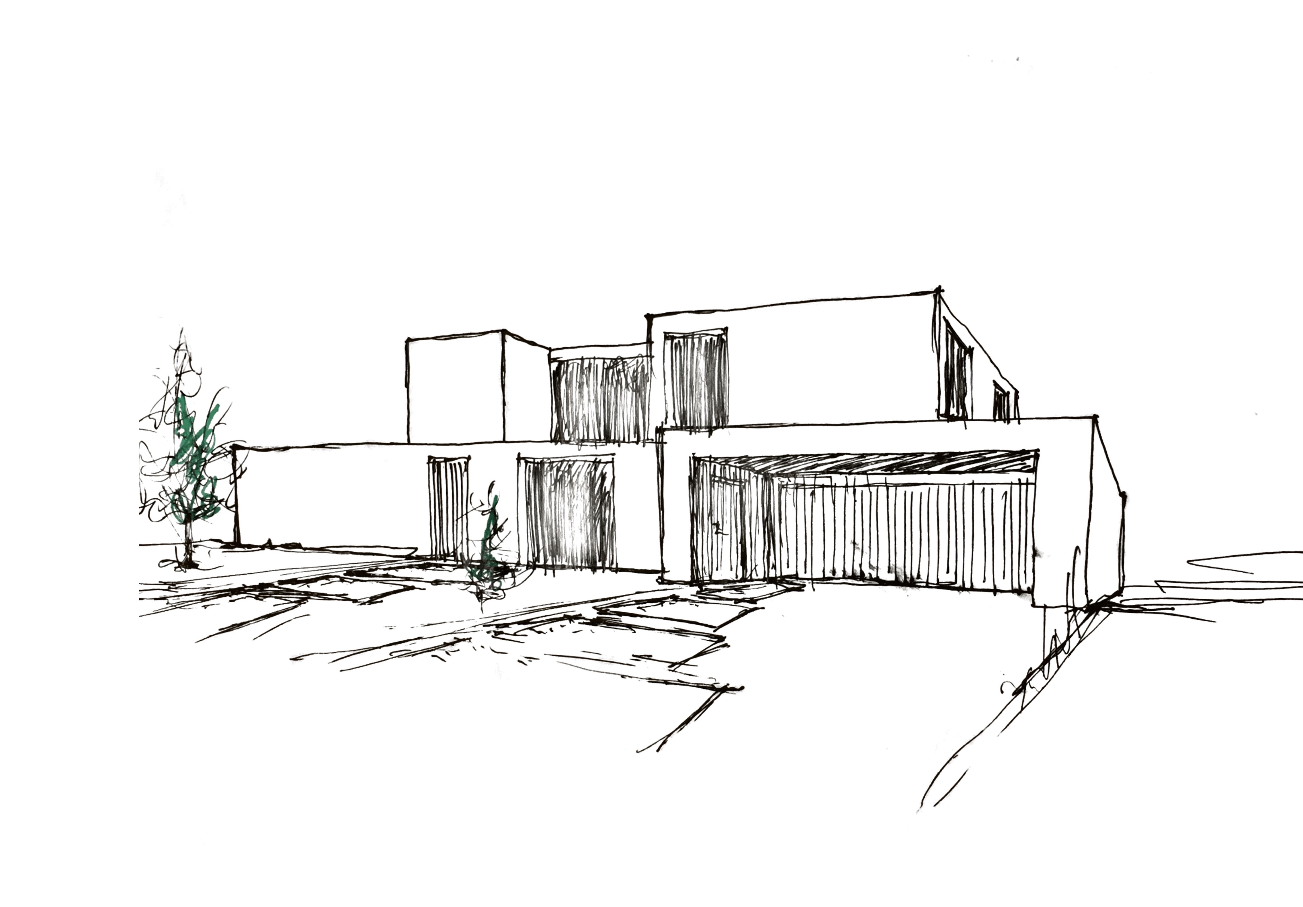 Der Entwurfsprozess war von Beginn an von der Auseinandersetzung mit Typologie, Proportion und Nutzung geprägt. Früh entwickelte Skizzen und Studien untersuchten die Staffelung der Baukörper, die Offenheit der Grundrisse sowie die Wechselwirkung von Innen- und Außenräumen.